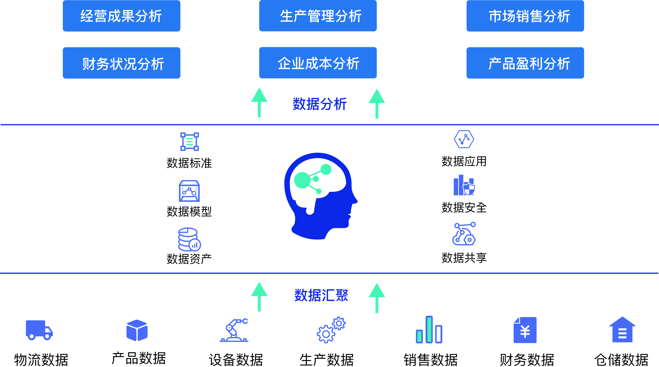 为企业构建核心数智大脑,提供数据采集、数据清洗、数据质量、数据指标、数据资产、数据建模、数据共享、数据应用等服务。